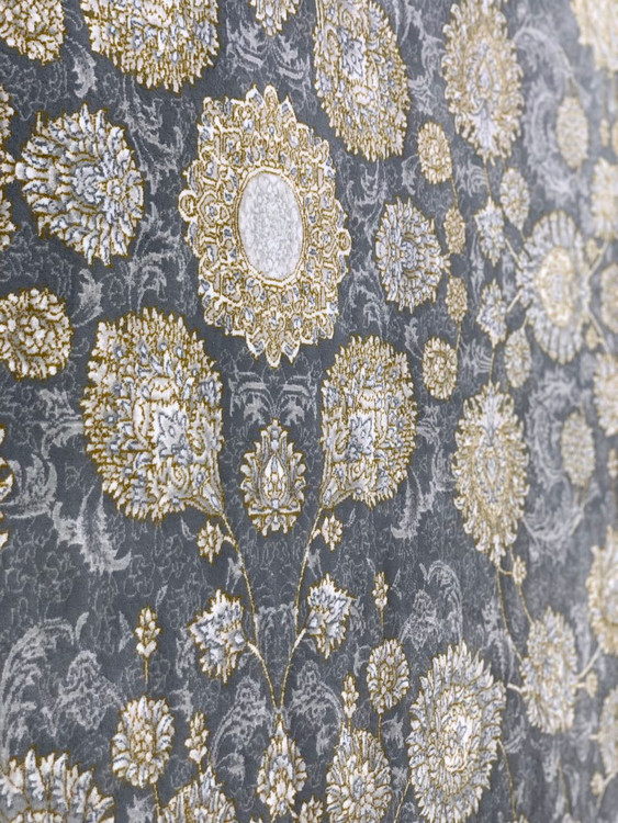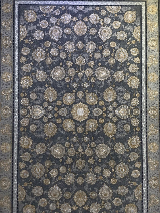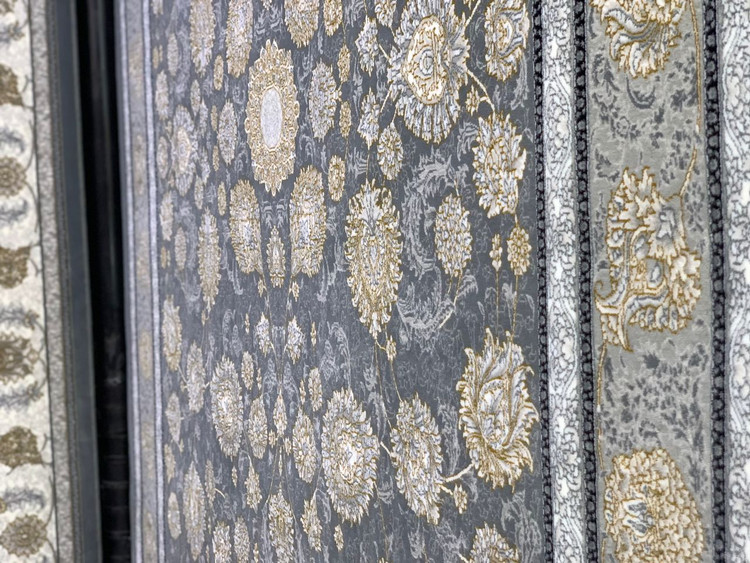 فرش700 شانه نگین مشهد نقشه افشان طلاکوب رنگ طوسی دودی