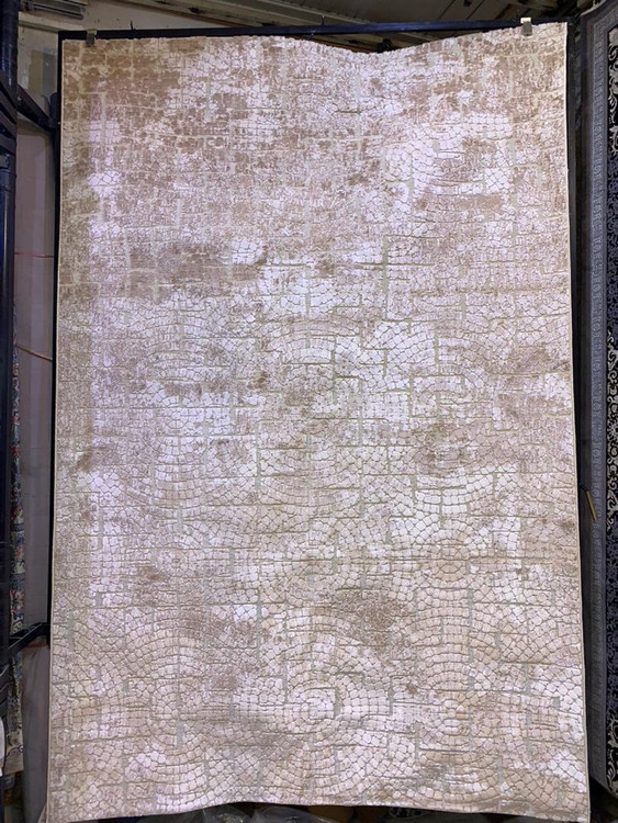 فرش طرح مدرن و فانتزی شنل ابریشم طرح اگرین بژ
