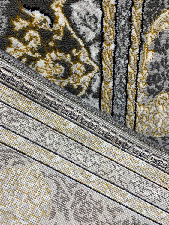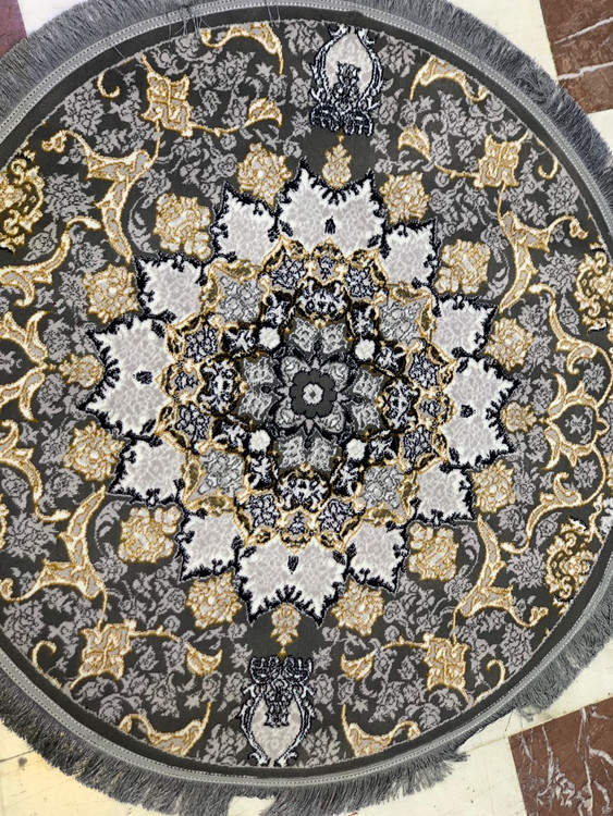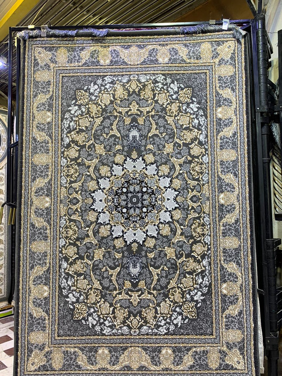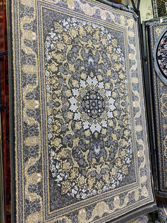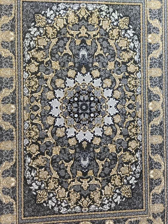 فرش 500 شانه نقشه ترنج طلاکوب طوسی دودی