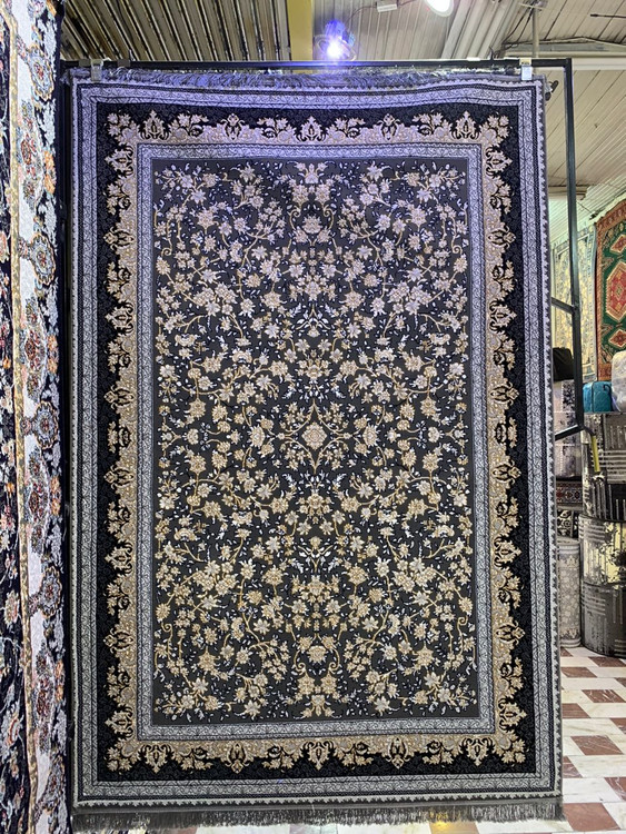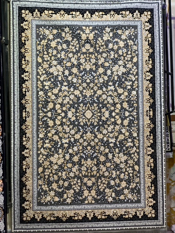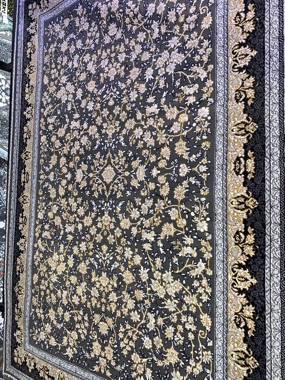 فرش 500 شانه 1000 تراکم نقشه افشان دودی طلاکوب