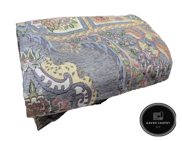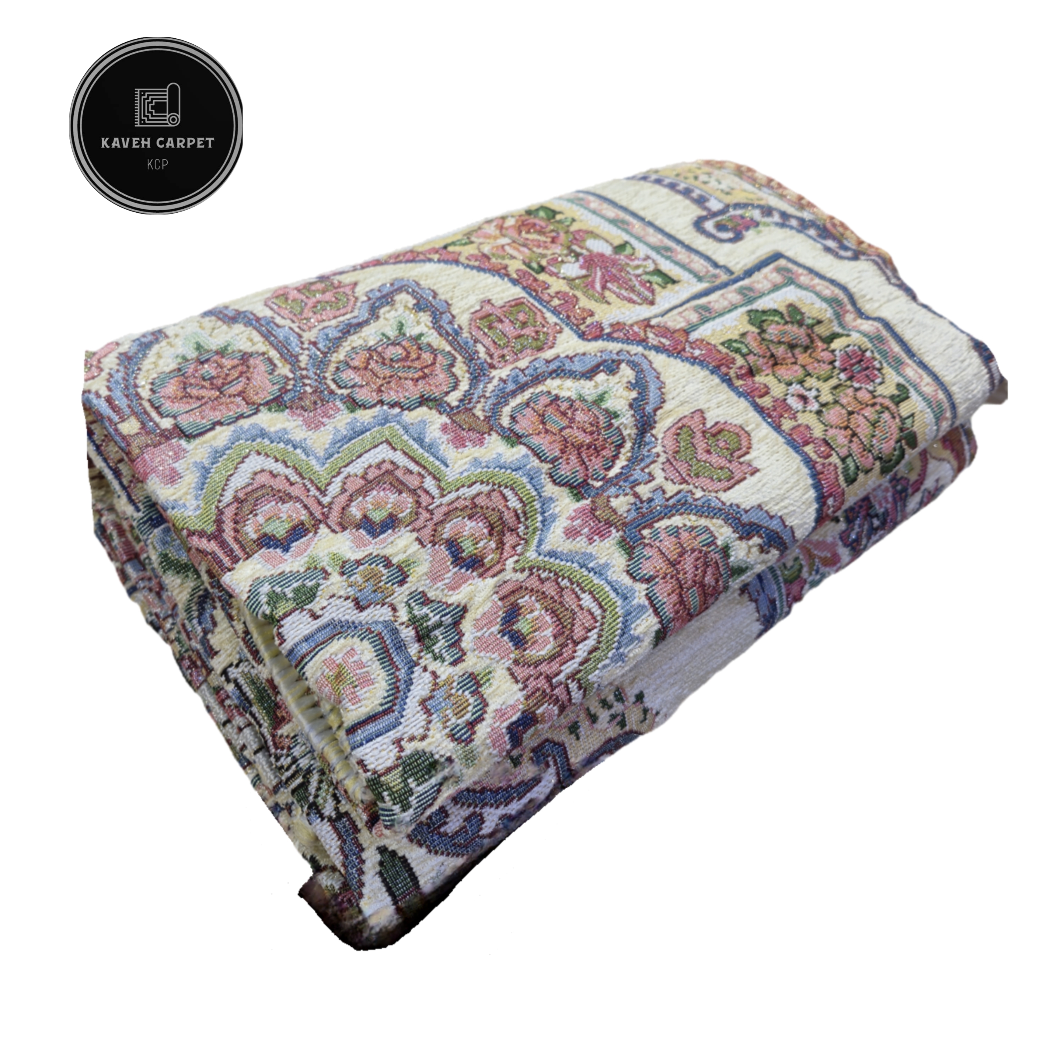 بافت کوبلن: ظرافتی دستبافگونه و بینظیر: تکنیک بافت کوبلن، به این روفرشیها ظاهری فوقالعاده ظریف و دستبافگونه میبخشد. نقش و نگارها با دقتی مثالزدنی و وضوحی بینظیر بافته میشوند، گویی هر نخ، با وسواس خاصی در جای خود قرار گرفته است. این ویژگی باعث میشود روفرشی شما به یک تابلو فرش چشمنواز بر روی زمین تبدیل شود که نگاه هر بینندهای را به خود خیره میکند و حس اصالت را القا مینماید.